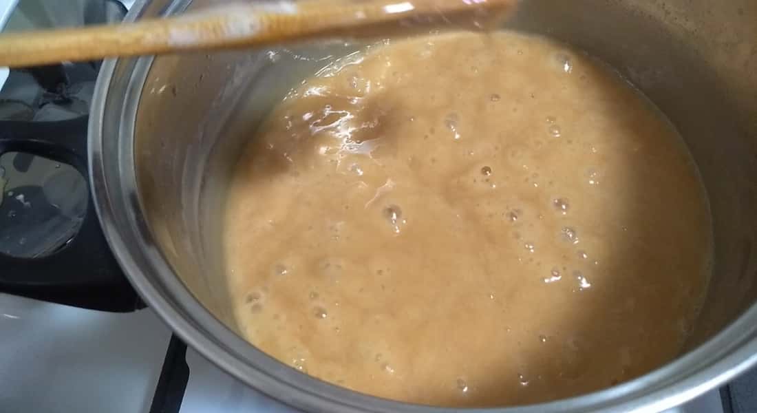 Молочна суміш закипіла, і варимо періодично помішуючи на вогні трохи нижче середнього, щоб маса кипіла.