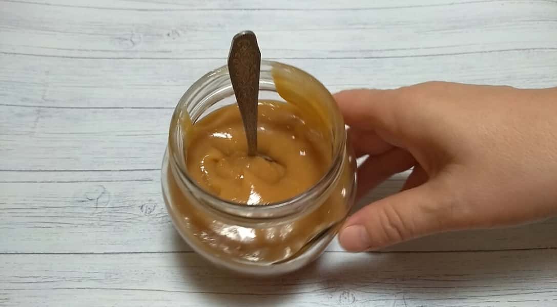 Молоко проварилося ще 10 хвилин, стало трохи темніше і густіше, згущене молоко повністю готове. Перевіряємо – краї згущеного молока не стікаються на середину, значить згущене молоко 100% готове. Переливаємо в сухий посуд та використовуємо за призначенням.