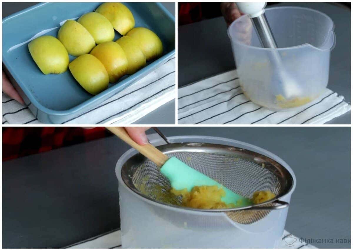 І так, почнемо з приготування пюре. Врахуйте, що яблука і ягід за вагою потрібно взяти спочатку більше, щоб за підсумком вийшло стільки пюре, скільки вказано в інгредієнтах.