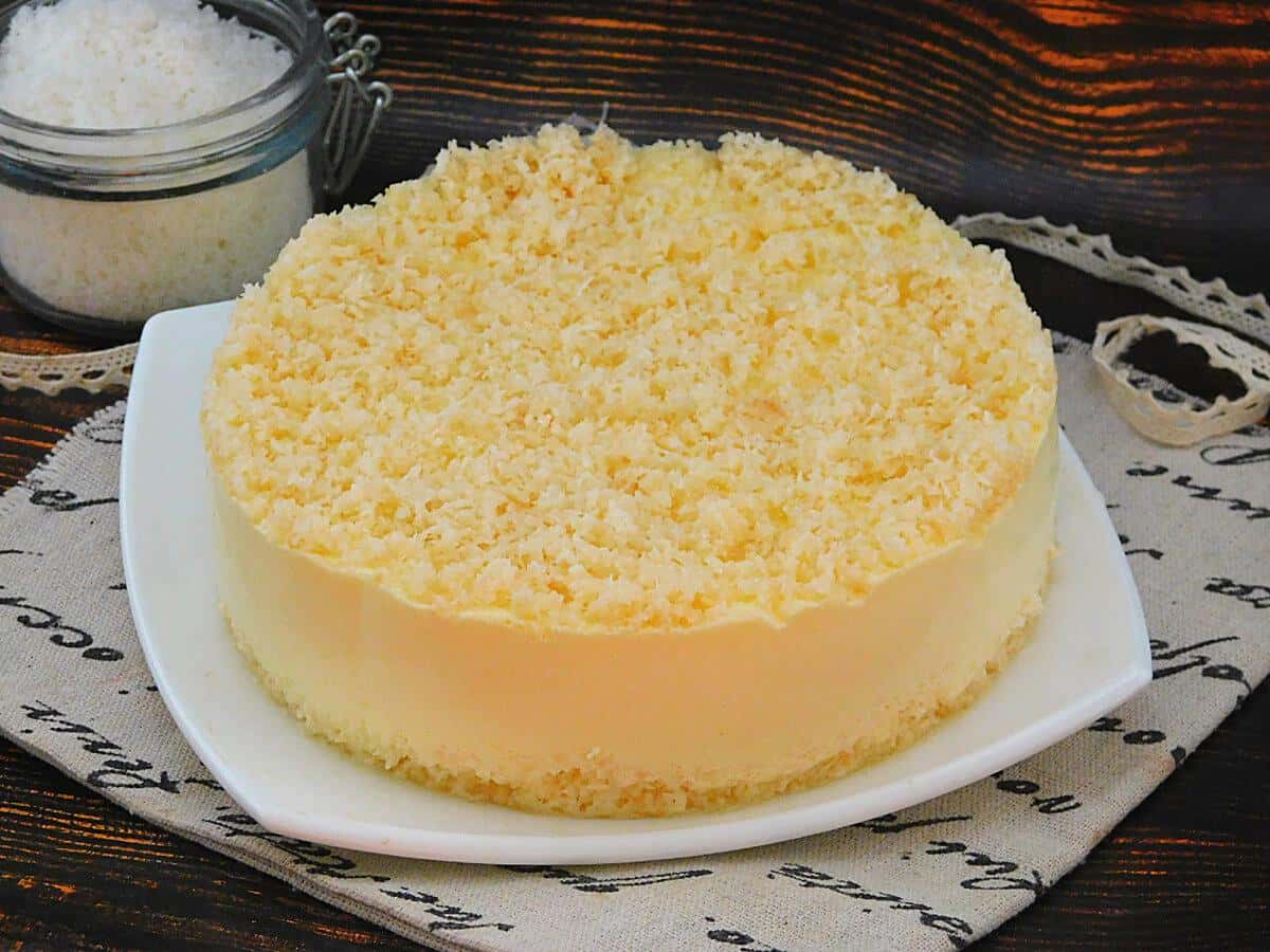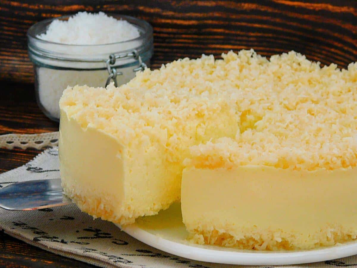 Зверху посипати кокосовою стружкою, що залишилася. Прибрати в холодильник для застигання і стабілізації на 8-10 годин.