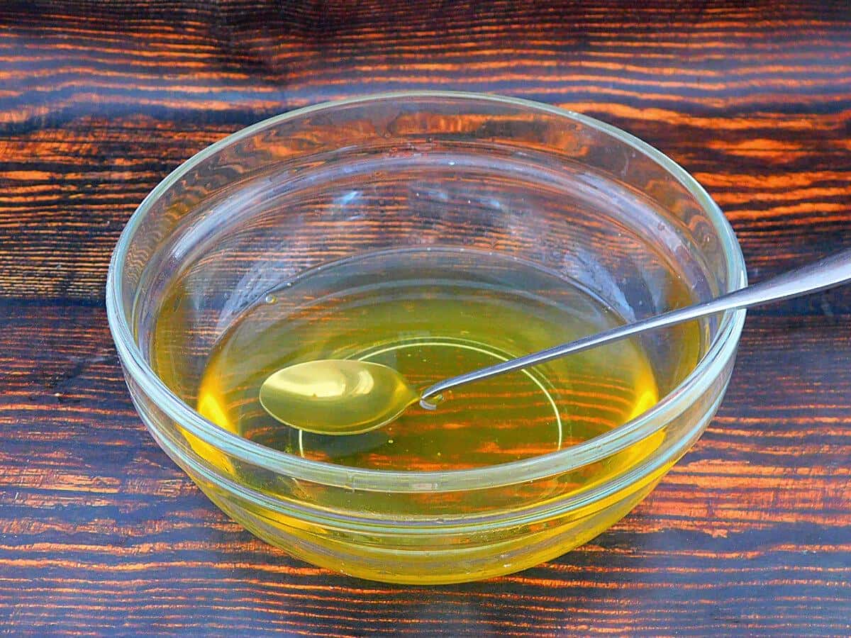 Поставити на плиту на невеликий вогонь і, постійно помішуючи, дочекатися, щоб масло розтануло. Кокосова стружка при цьому стане жовтуватого відтінку.
