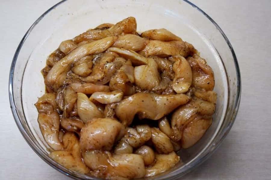4. Залити курячу грудку соєвим соусом і добре перемішати.