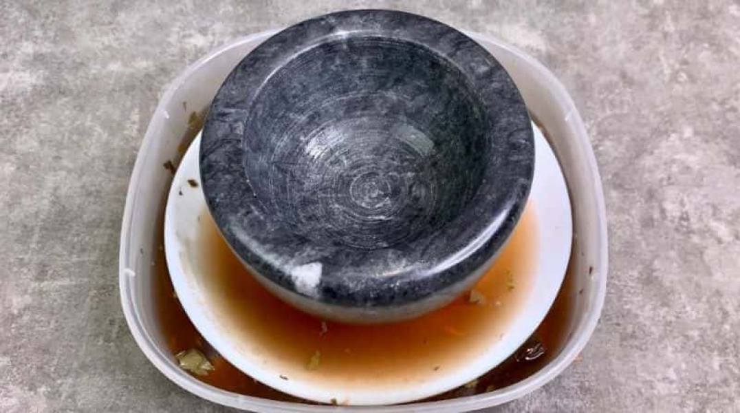 У чисту каструлю з водою всипаємо сіль, додаємо чорний перець горошком, запашний перець та лавровий лист. Ставимо на плиту, проварюємо з моменту закипання 2-3 хвилини, знімаємо з вогню і повністю охолоджуємо.