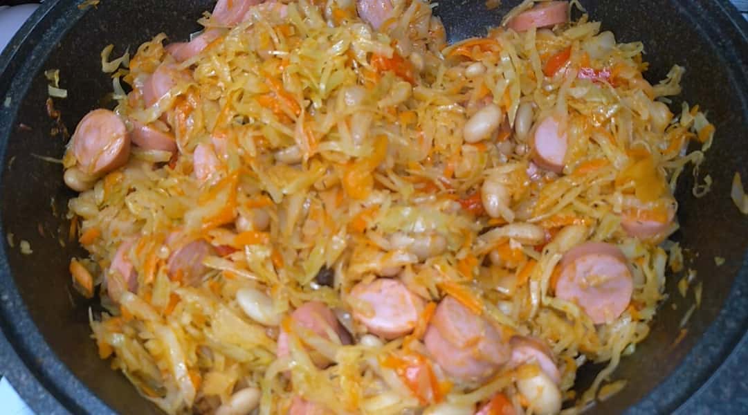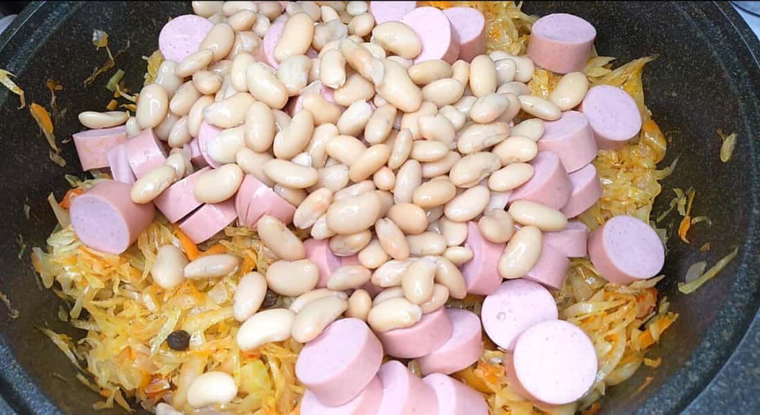 Ароматна соковита капуста з ситною квасолею та сосисками – все дуже добре поєднується та насичує, смачно та просто у приготуванні!