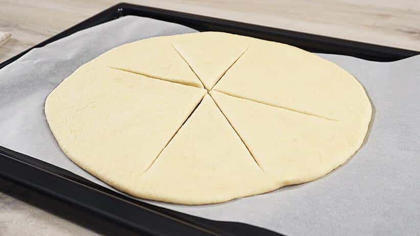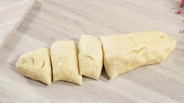 Ділимо тісто на дві частини, і потім одну частину ділимо ще на рівні 6 частин.