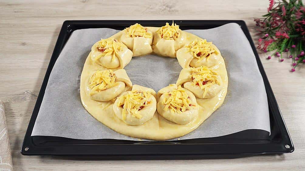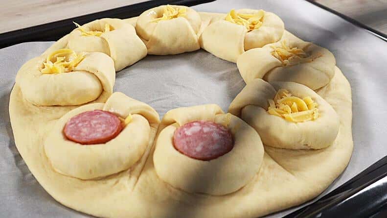 Викладаємо кульки на кожну частину розкачаного тіста.