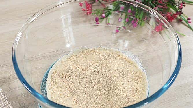 Додаємо до молоку цукор і сухі дріжджі. Все перемішуємо.