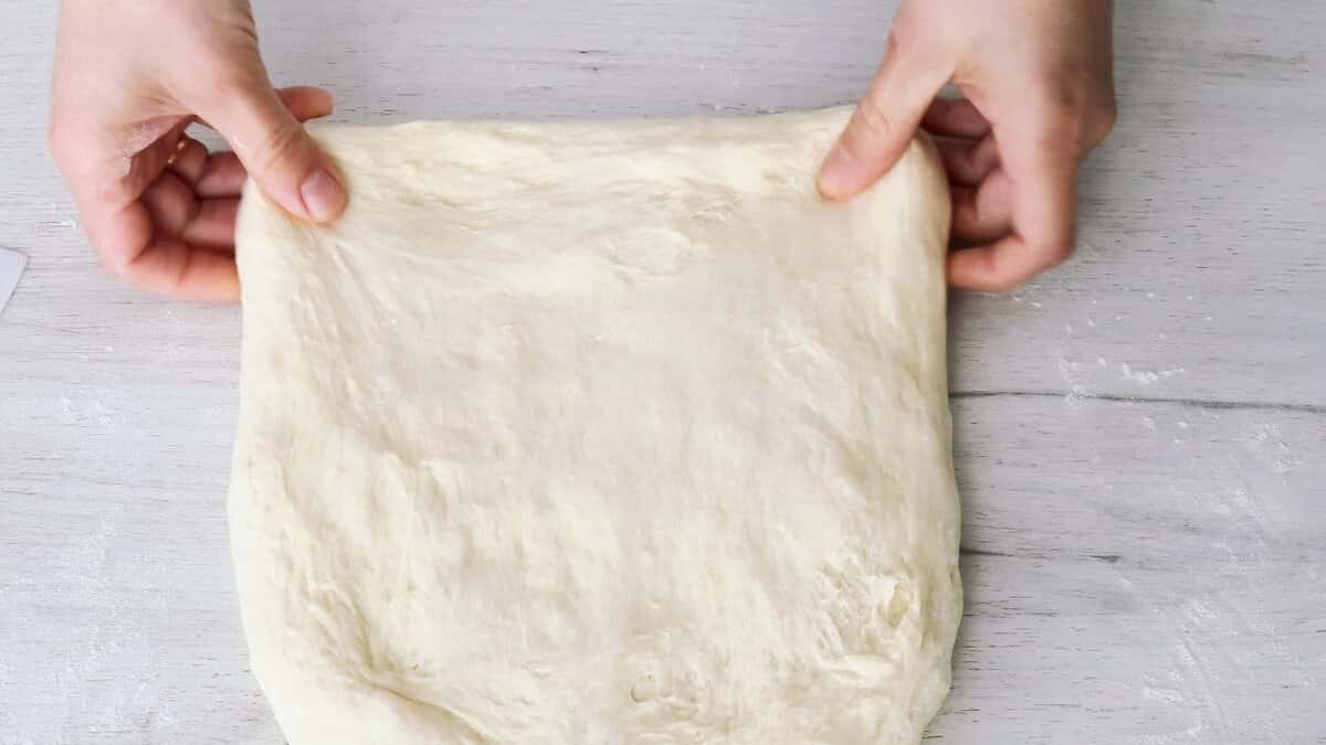 Потім тісто розправити руками і злегка розтягнути.