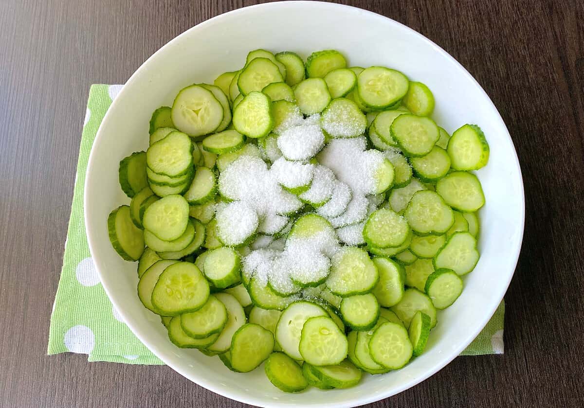 Залишила на 1 годину при кімнатній температурі, за цей час огірки виділять сік.