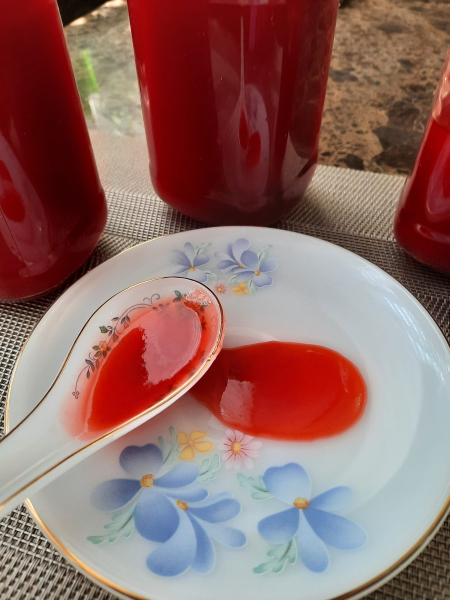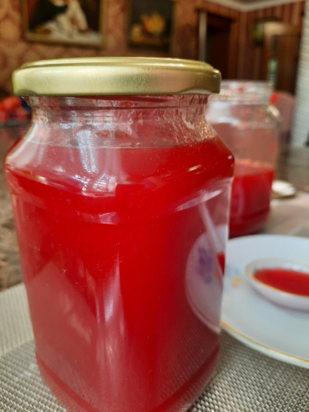 6. Гарячим розбити в стерильні баночки,закатати стерильними (я опустила в закіпчену воду) кришечками, перевернути.