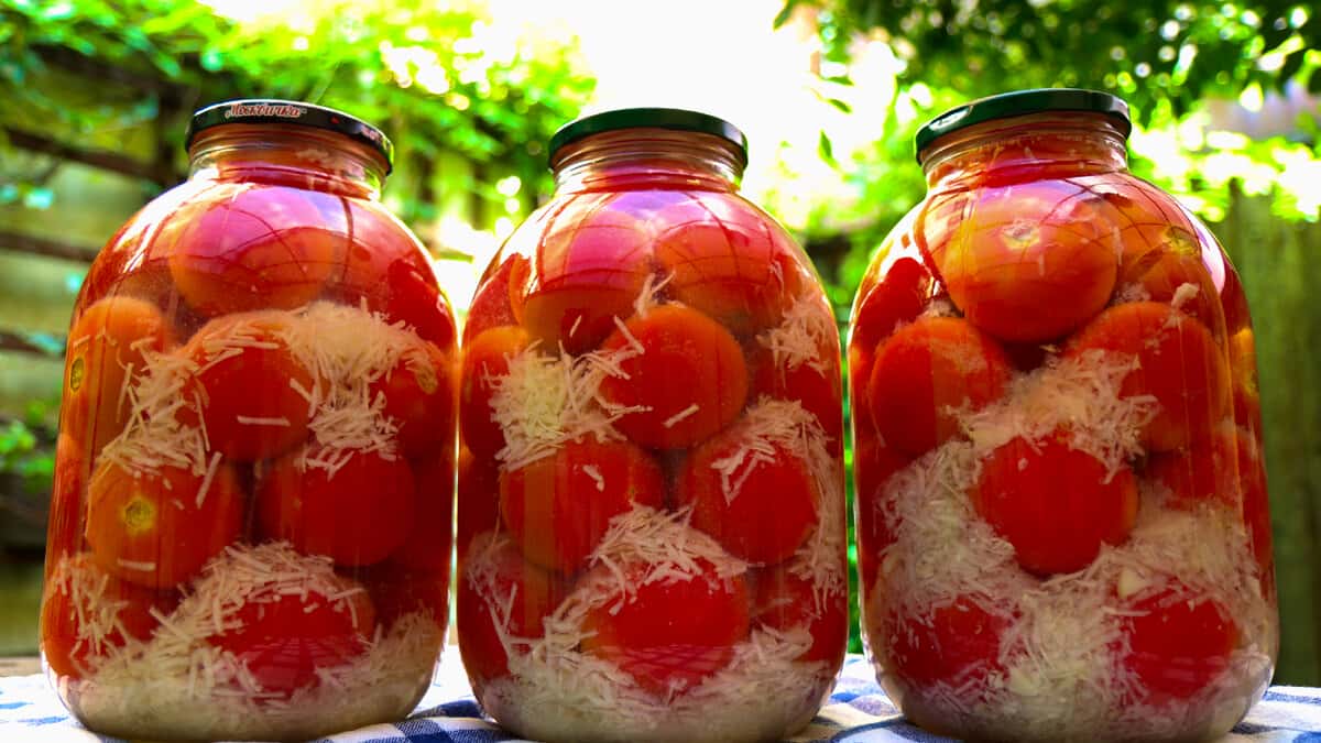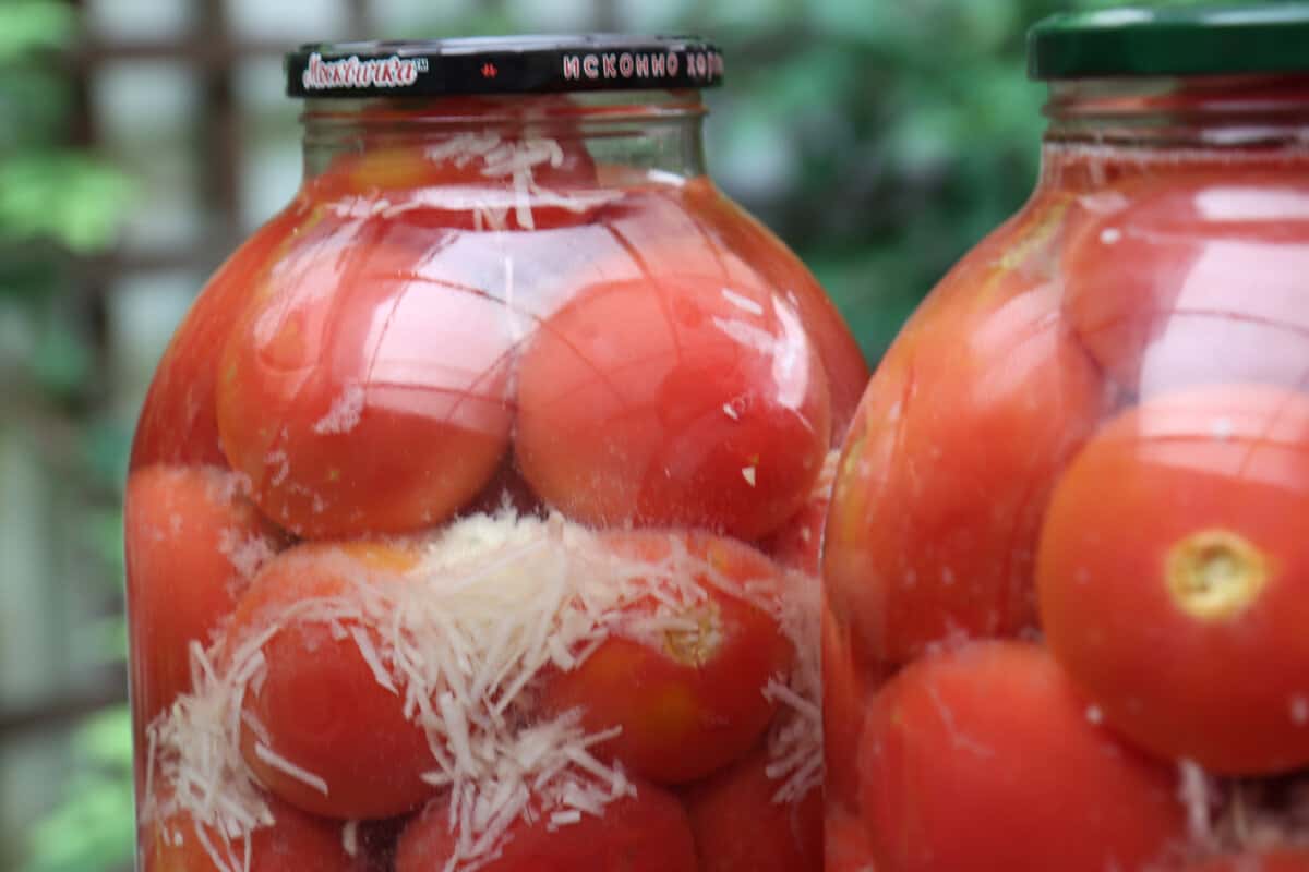 Закручую банки кришками і перевернувши догори дном, укутую тепліше, щоб все якомога довше остигало. Так помідори в снігу будуть зберігатися при кімнатній температурі без втрат.