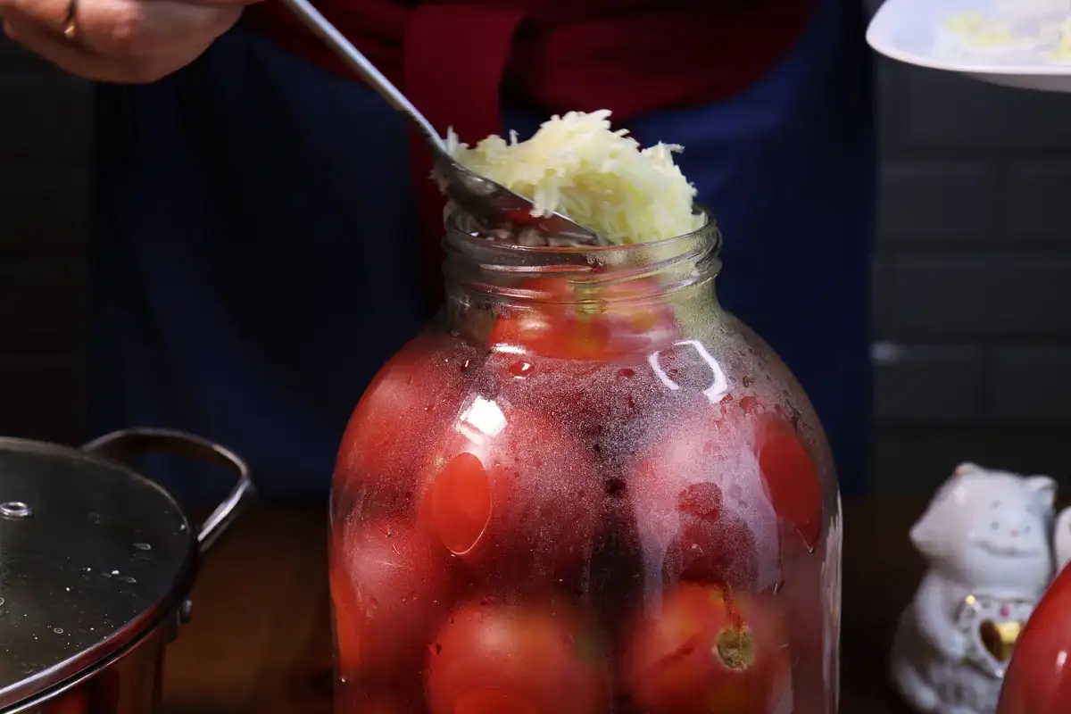 - 1 чайна ложка оцтової кислоти 70% на банку в 3 літри. Якщо банка менше, то і оцту менше.