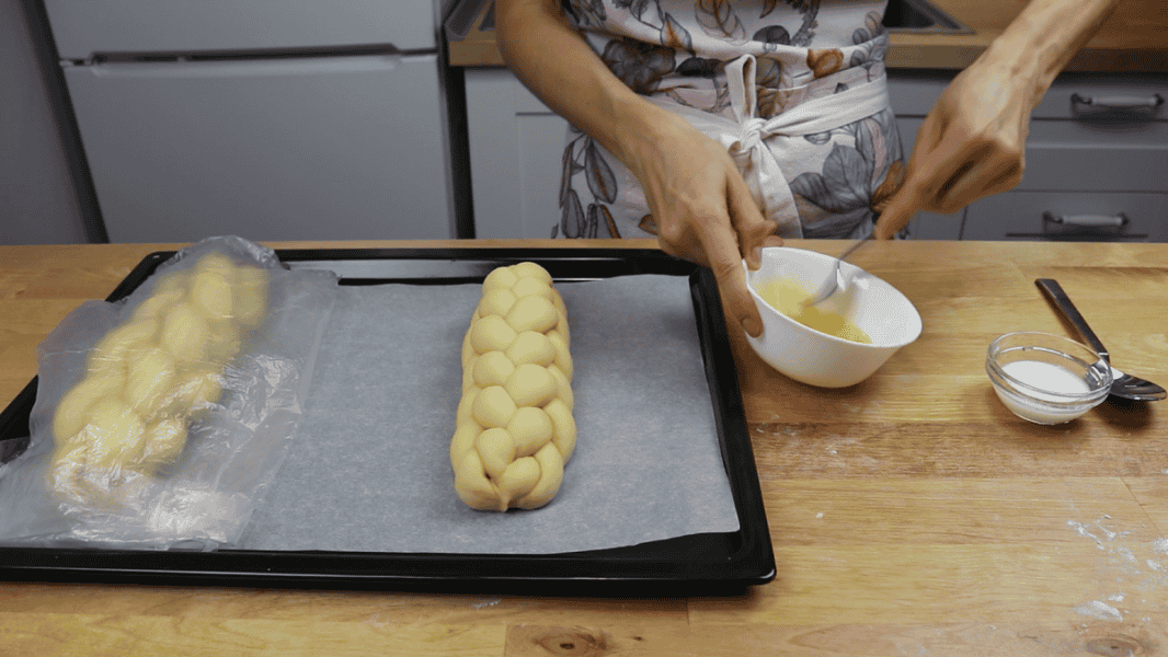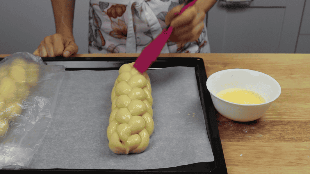 Перед випіканням змащую і другу плетінку.