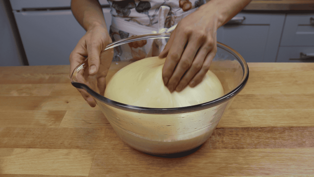 Кладу тісто в миску змащену олією, накриваю та залишаю для бродіння на 2 години.