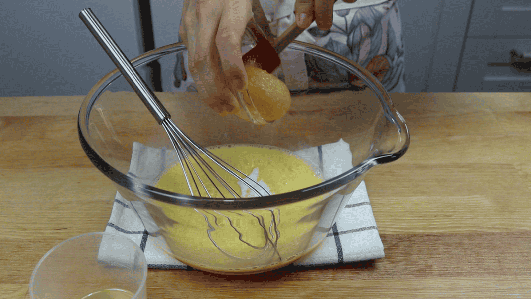 Яйця збиваю вінчиком. Додаю сіль та мед. Розмішую.