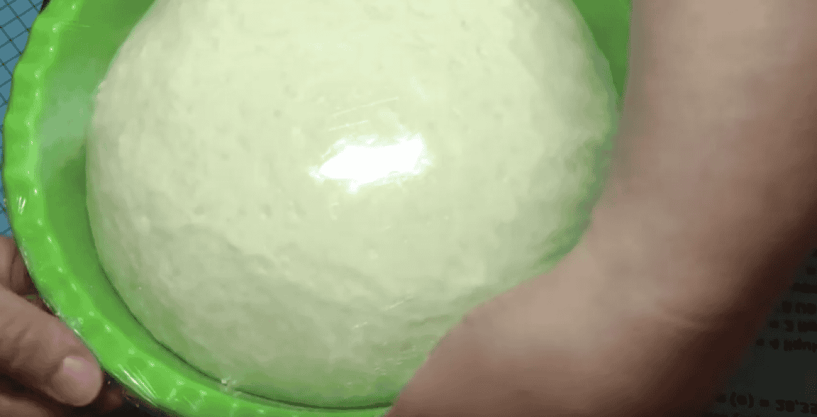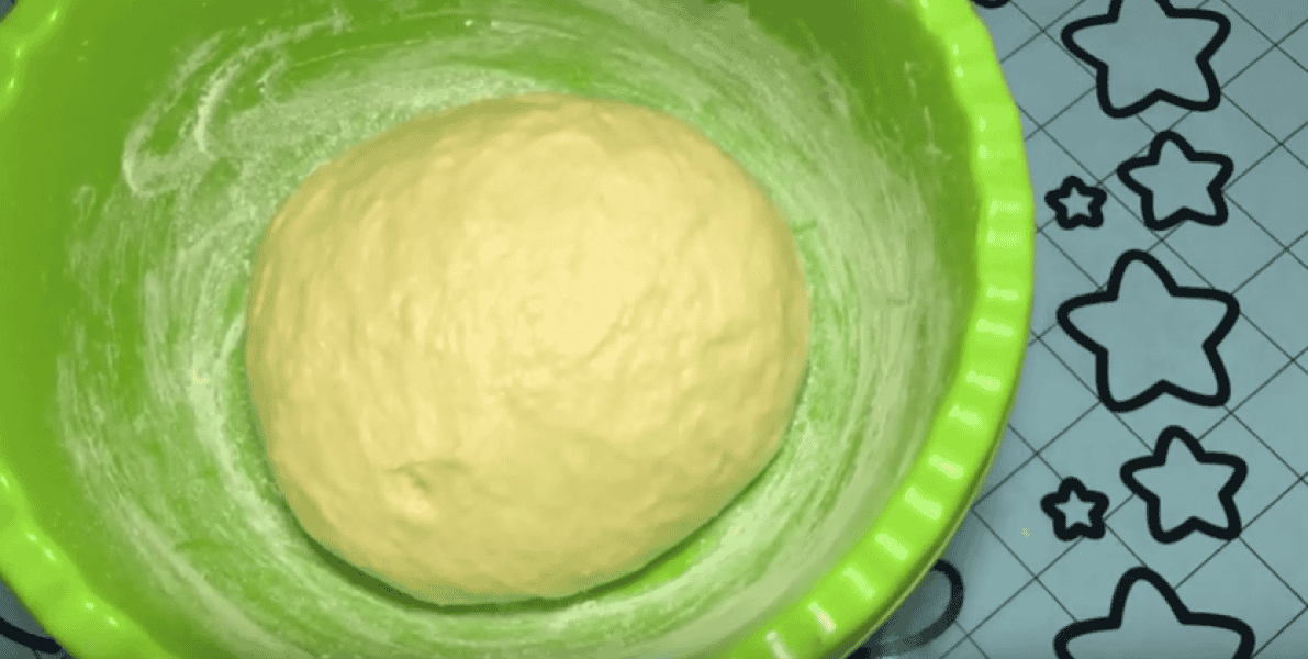 Тісто округляємо, перекладаємо в миску посипану борошном або змащену олією. Накриваємо плівкою, рушником та залишаємо підходити на 40 хвилин-1 годину в теплому місці.