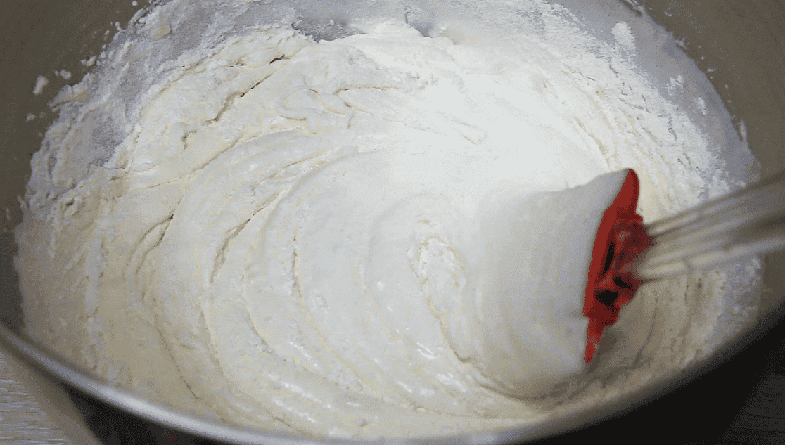 Частинами, акуратно перемішуючи знизу вгору, введіть борошно, змішане з розпушувачем. Готове тісто має вийти ніжним та повітряним.