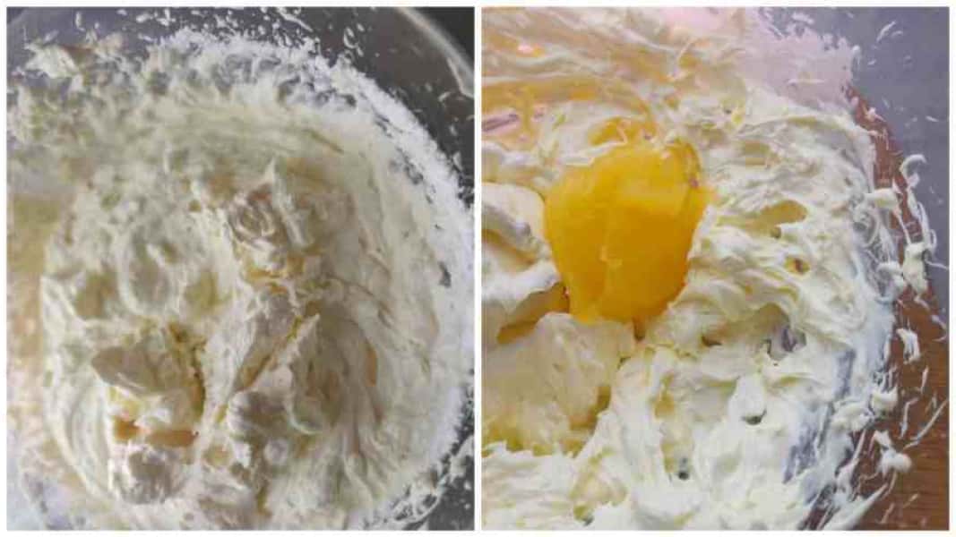 Жовтковий корж. Два яйця розділяємо на білки і жовтки. Білки з цукром збиваємо до стійкого стану, додаємо жовтки і продовжуємо збивати до пишної маси протягом 8-10 хв.