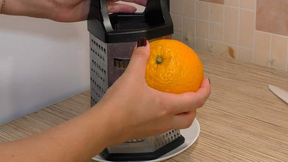 Знімаємо цедру за допомогою спеціального ножа або дрібної терки. Знімаємо тільки верхній шар ( помаранчевий ).