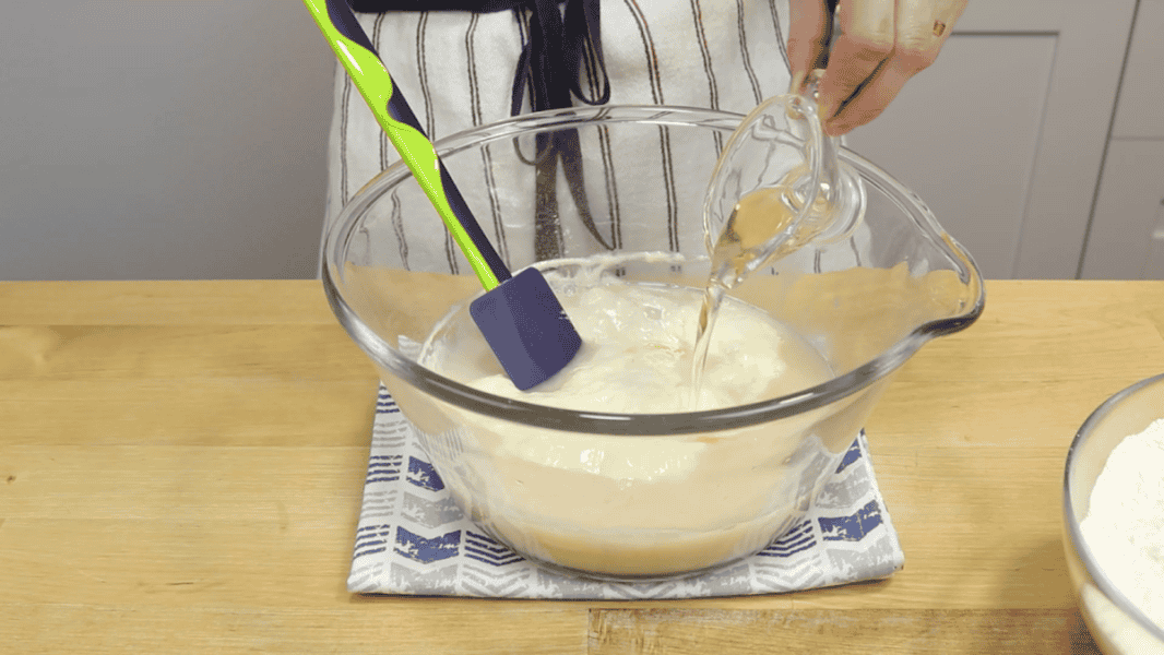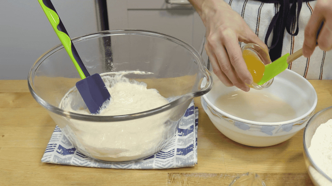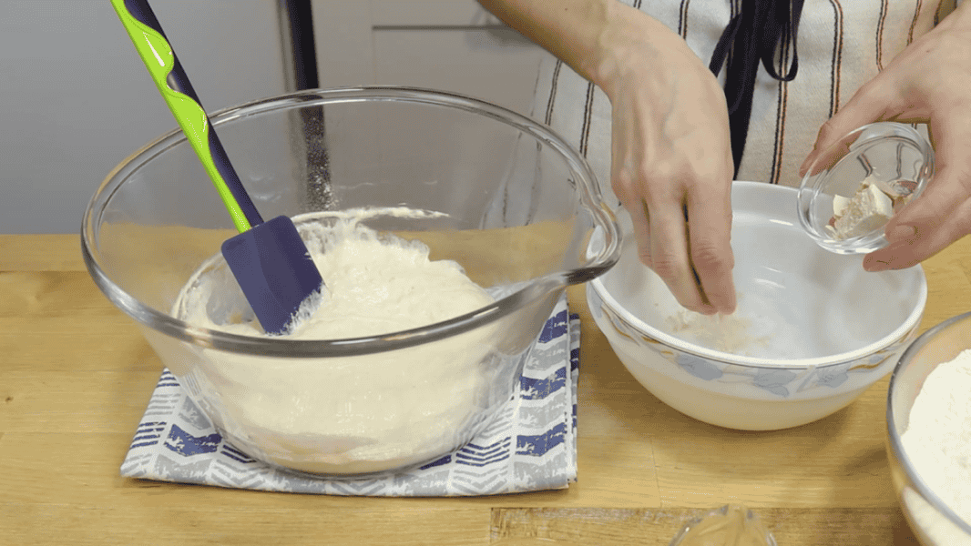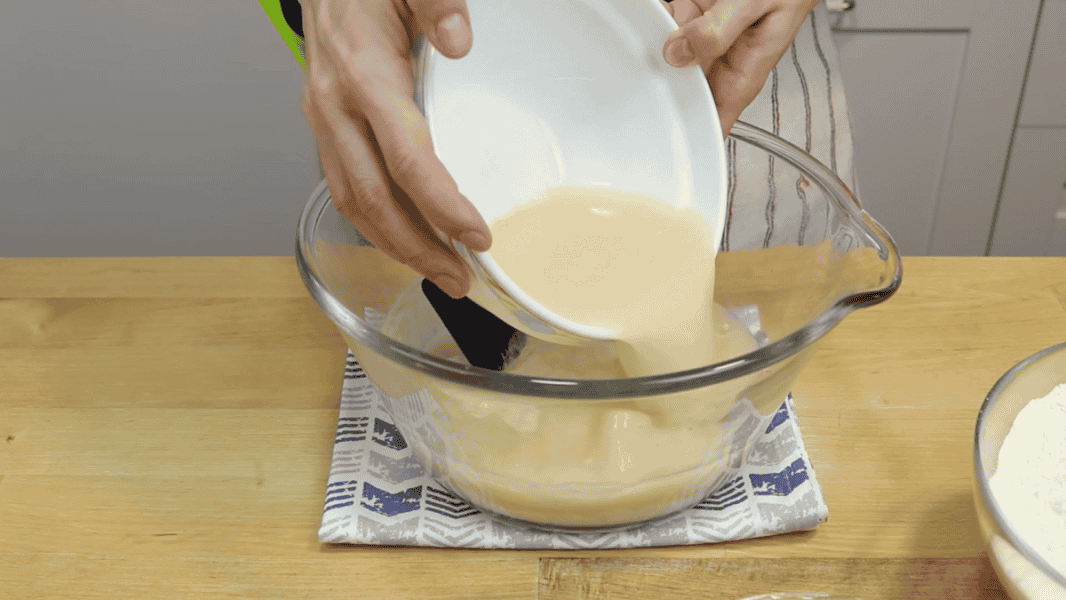 Увечері напередодні дня випічки потрібно зробити опару. Дріжджі розчинити у воді, додати борошно. Все добре перемішати.