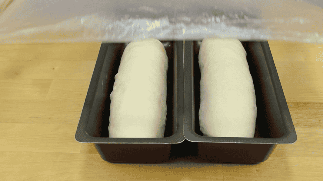 Готове тісто поділяю на дві частини, я вирішила зробити два буханці. У мене дві форми розміром 30*11 см.