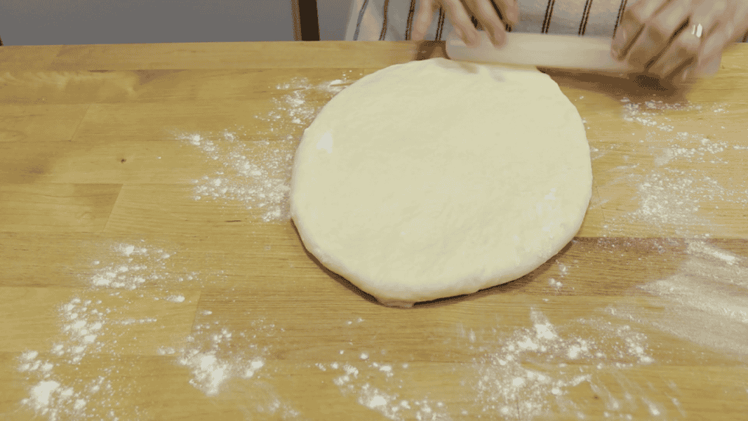 Кульки тіста кладу гладкою стороною до столу і розкачую в пласт.