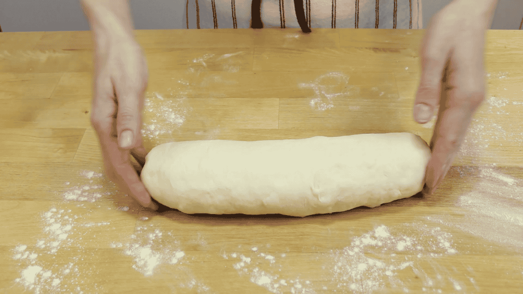 Згортаю в тугий рулет. Зайве борошно треба прибрати.