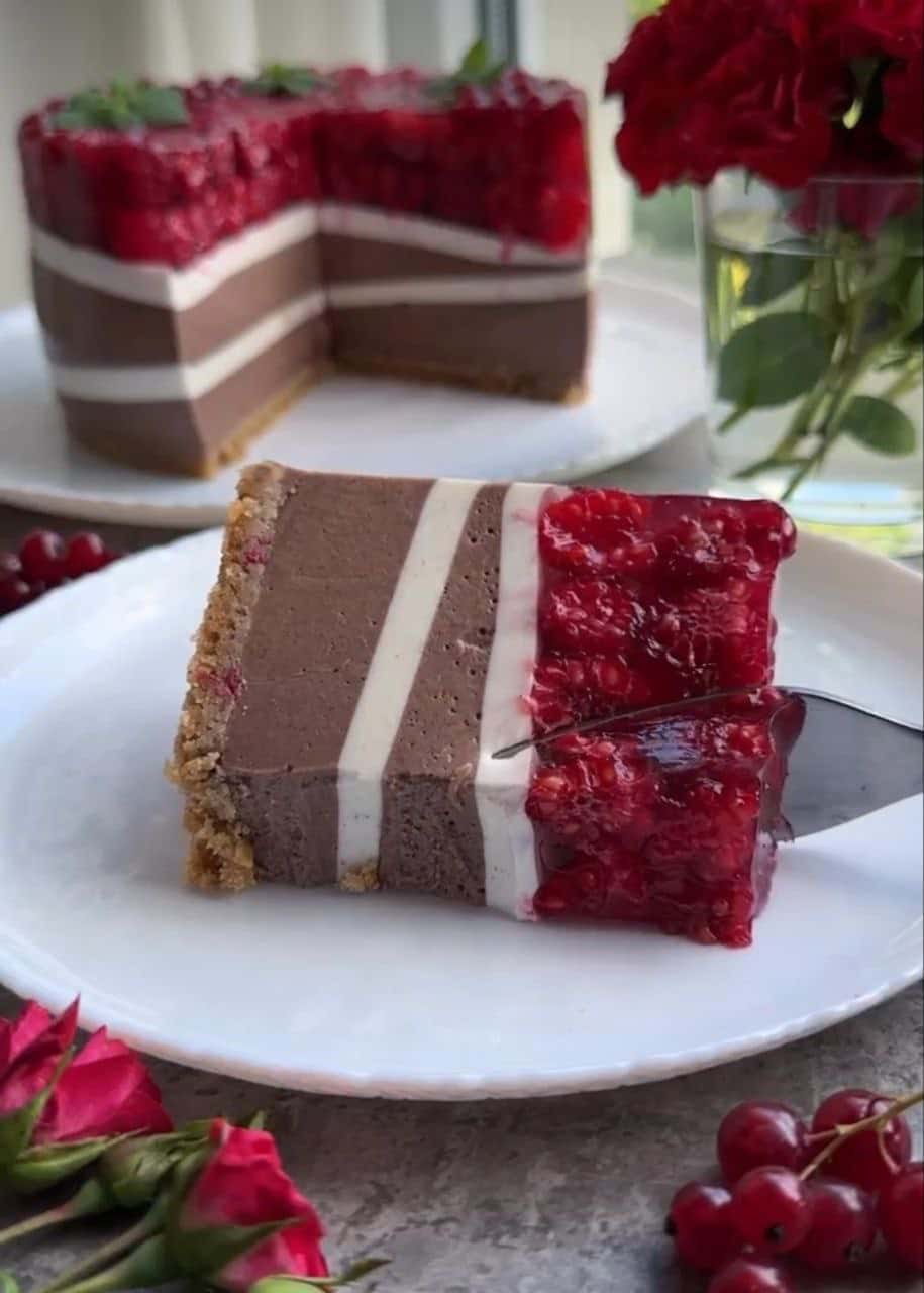 Ніжний шоколадний мус у поєднанні з вершково-ванільним, а в додатку – ягідний шар.