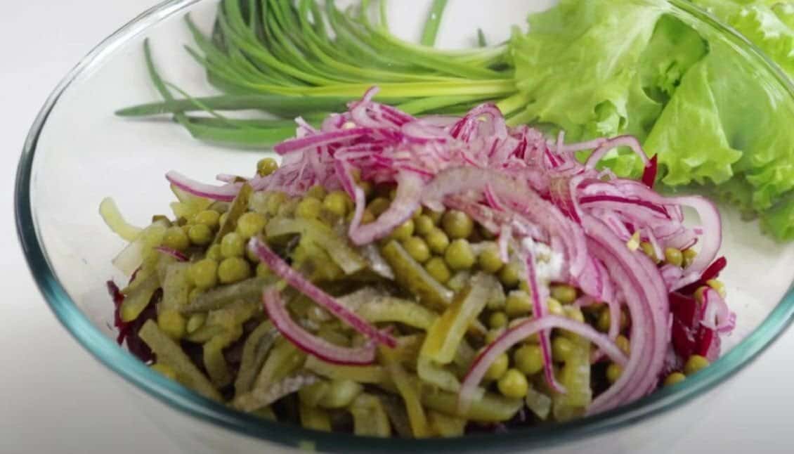 Готовий салат посипати дрібно рубаною зеленою цибулею.