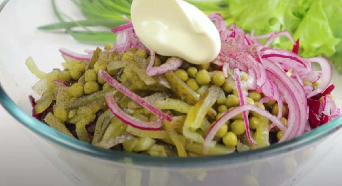 Солимо і перчимо за смаком. Заправляємо майонезом.