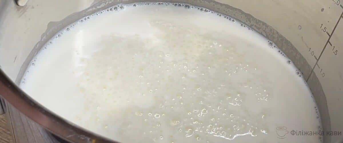 У каструльку з молоком додається порошок Агара і гарненько розмішуємо.