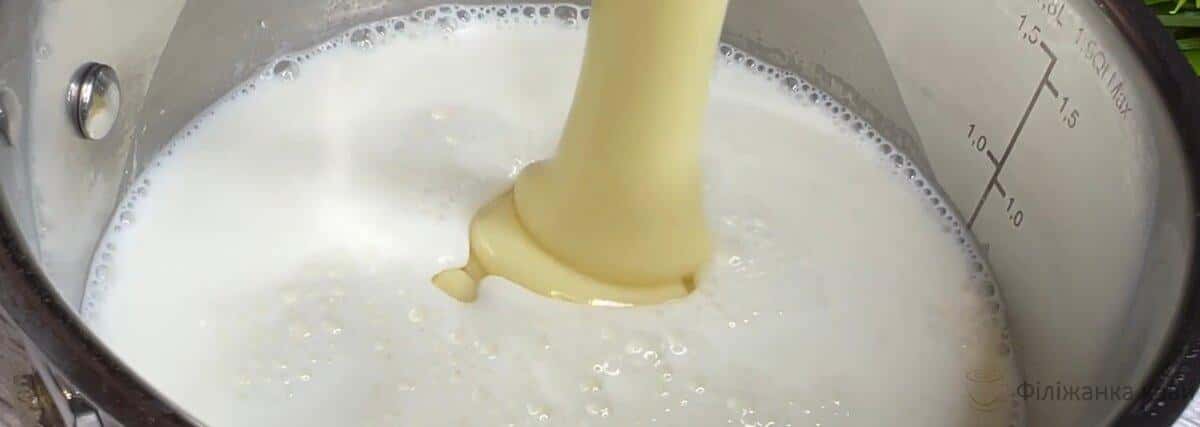 У чисту каструлю з молоком додаємо порошок Агара, гарненько перемішуємо і вливаємо згущонку.