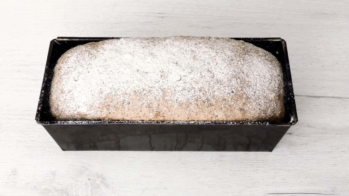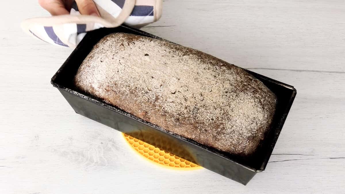 Я використовувала для випічки кексову форму розміром 25 на 11 см. Ця кількість тіста розрахована на дві невеликих хлібні форми Л11- Л12.