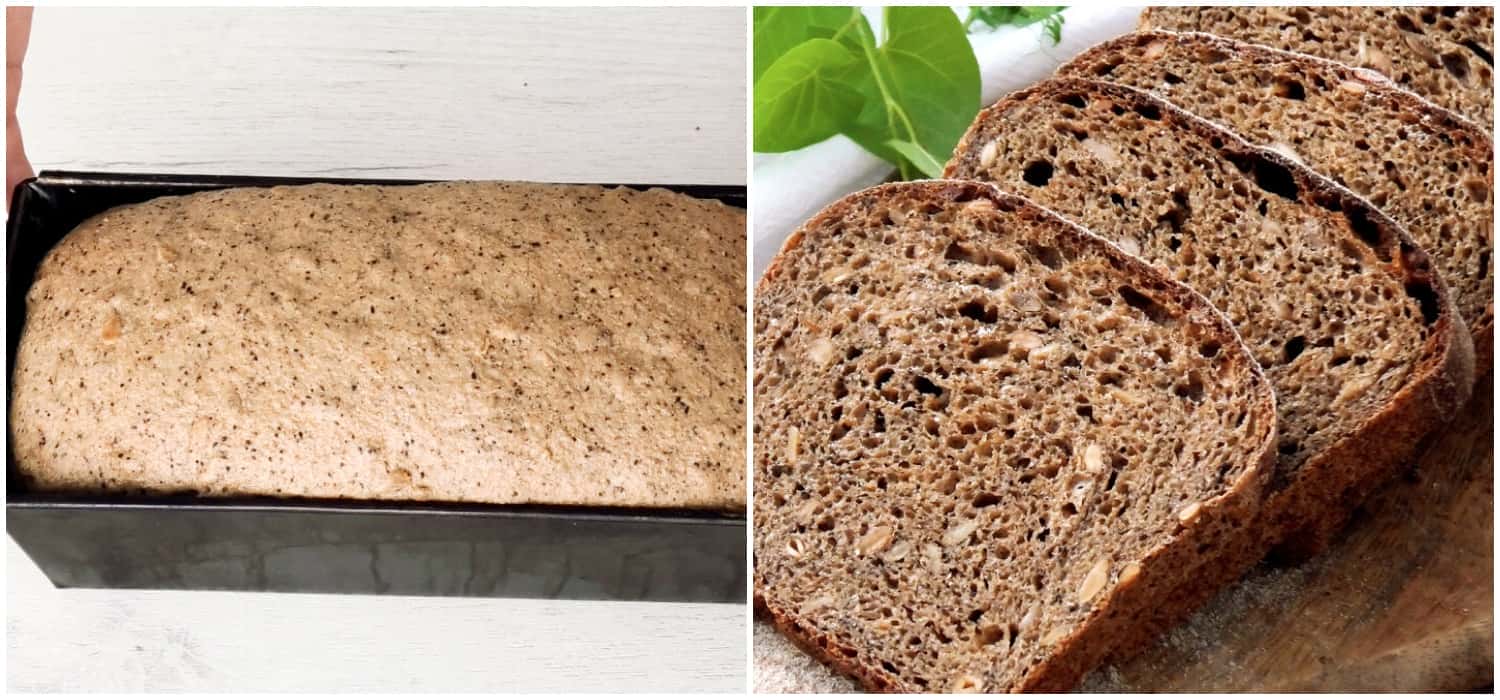 Всім привіт! Сьогодні давайте приготуємо з вами дуже простий і неймовірно смачний хліб. Цей рецепт хліба точно вам сподобається, тому що його не потрібно довго вимішувати, готується він досить швидко, а наскільки він ароматний, ситний, насичений, ви зможете дізнатися, коли самі його приготуєте! Цей хлібець просто чудовий, не містить білого борошна, робиться виключно на цільно зерновому борошні і житній заквасці. Добавка з насіння відмінно доповнює і робить його ще смачніше. А ферментований солод надає такий аромат, що ніякі булки і торти з ним не зрівняються. Добавки в цьому хлібі можна вносити у вигляді різних сумішей насіння і не тільки. Експериментуйте і нехай вам буде смачно!