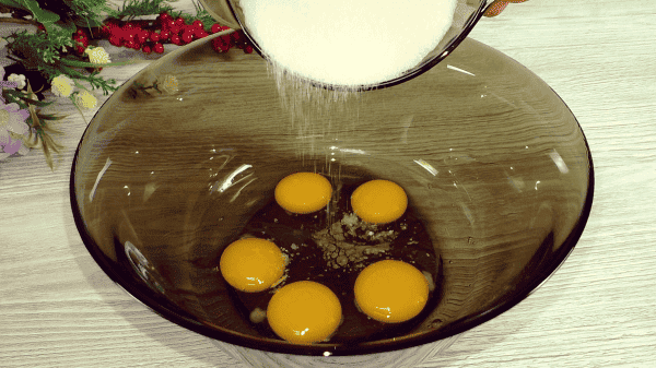 Збити яйця з дрібкою солі, цукром, краще міксером до пишної маси.