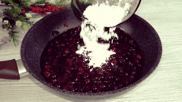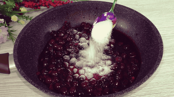 Всипаємо цукор у вишню без кісточок, за смаком, ставимо на плиту і доводимо до кипіння.