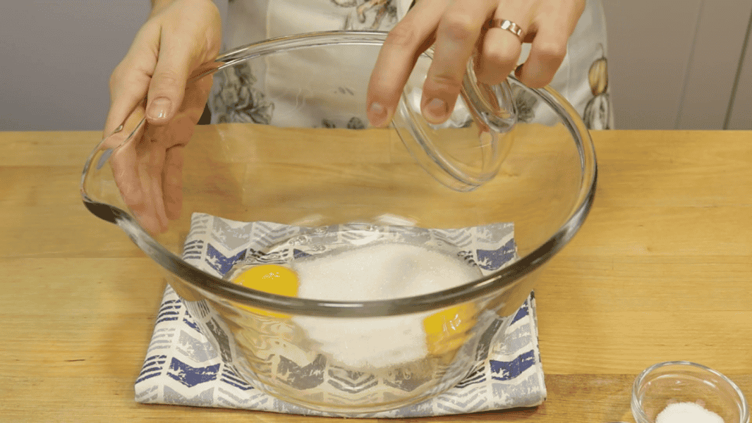Яйця збиваю з цукром, ванільним цукром та сіллю.