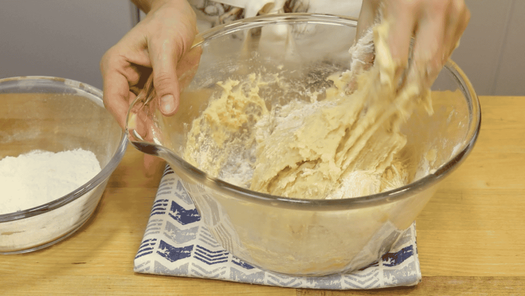 Тісто буде липке, в’язке. Приблизно через 5 хвилин збереться в грудку і відставатиме від стінок миски.