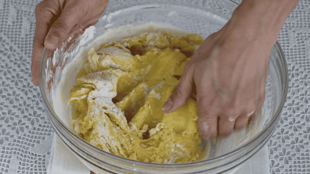 Тепер додаю борошно, що залишилося, і замішую м’яке, нелипке тісто.