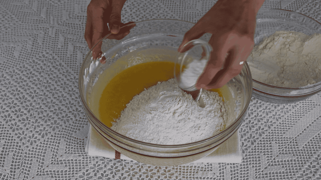 Всипаю половину борошна та розпушувач.