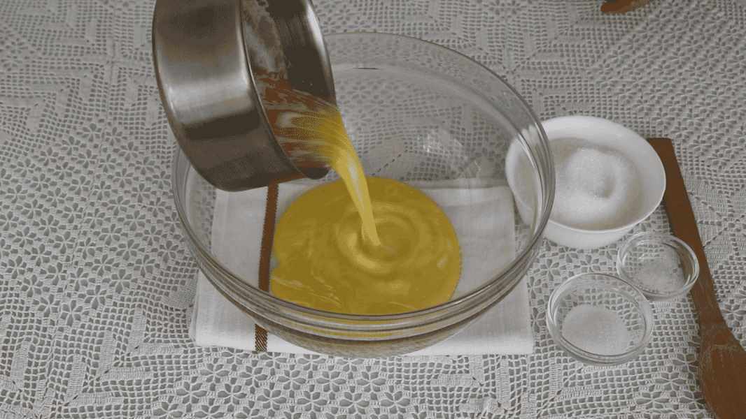 Вершкове масло ( або маргарин) потрібно розтопити та остудити. Вливаю його в миску, де замішуватиму тісто.