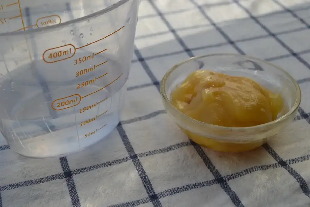Далі воду та мед наливаємо в каструлю, варимо на повільному вогні до розчинення меду (вийде сироп).