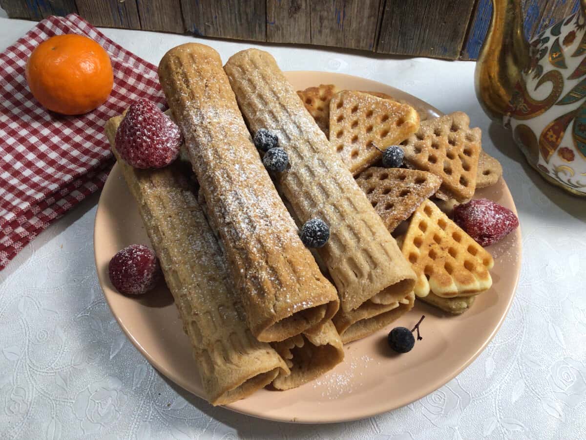 Сьогодні напекла печива і вафельних трубочок як з дитинства. Так як у мене ще залишилися бабусина елекровафельньниця і форма для випічки печива, тому сьогодні саме ця випічка на десерт для чаювання.