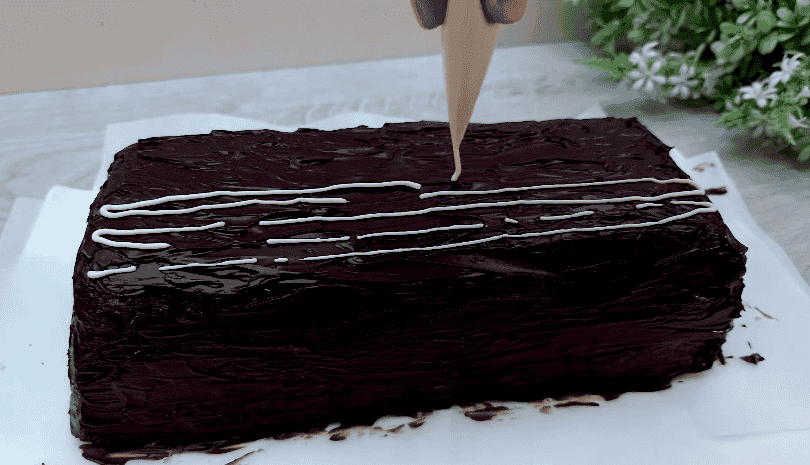 З’єднати все до однорідності, виходить чудовий ганаш для вирівнювання тортів. Покрити охолоджений сирник помадкою.
