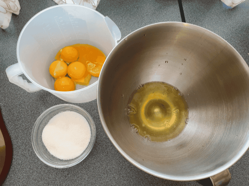 Жовтки збиваємо доки не побіліють.
