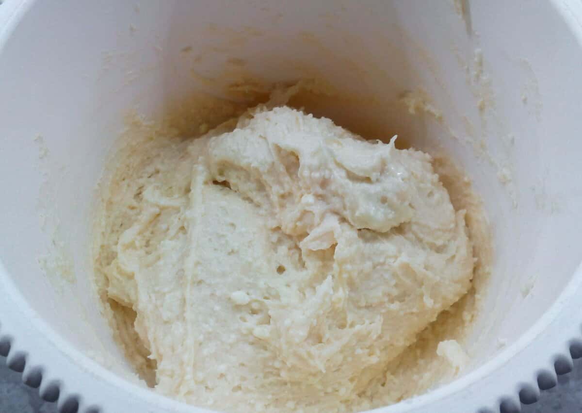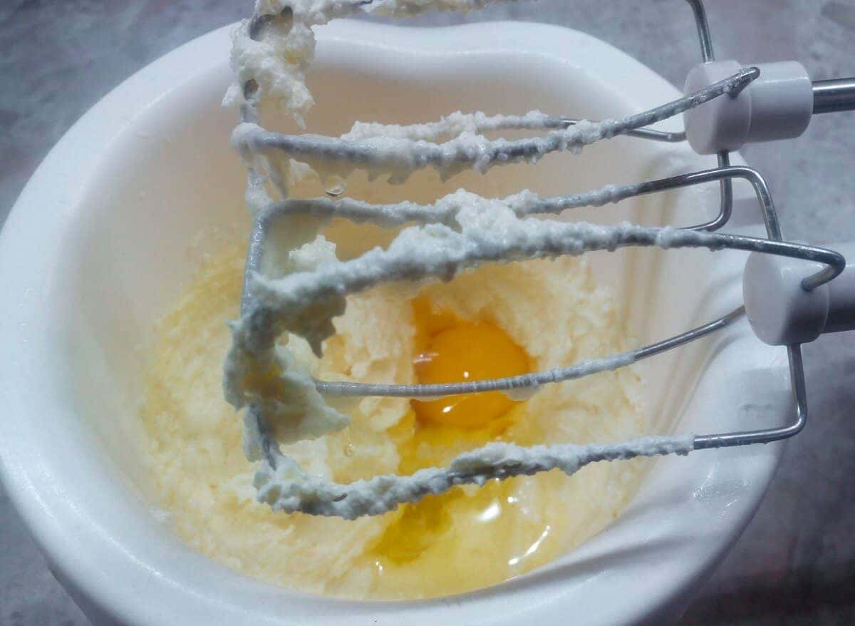 Додаємо сир і збиваємо все разом. Скажу відразу, сир окремо не збивала і не протирала через сито. Він у мене був навіть трохи зернистий. На якості кексу це не відбилося. Кекс вийшов повітряним, без сирних грудок.
