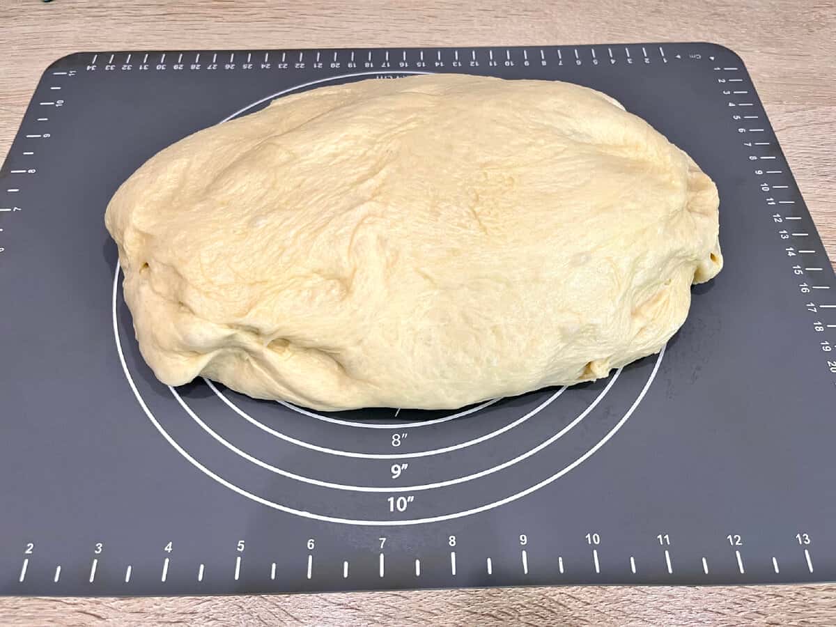 Замішуємо тісто, поки воно не почне відлипати від рук і стінок посуду. У комбайні використовуємо насадку “крюк”, поступово збільшуємо швидкість ( замішуємо 15-20 хвилин ).