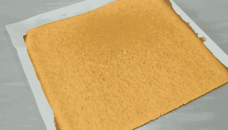 Дістаємо із духовки. Перевертаємо бісквіт на пергаментний папір. Знімаємо килимок чи папір, на якому випікався корж. Даємо бісквіту охолонути.