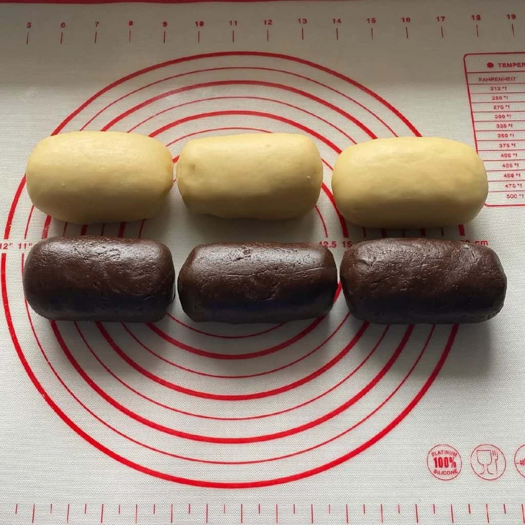 - Тісто розділити на дві не рівні частини: більшу/меншу.