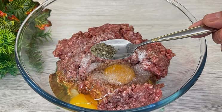 - Додаємо до фаршу яйця, сіль та чорний перець за смаком.
